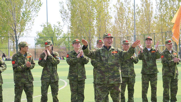 開訓前,在破冰啟航環節——【智勇通關】項目中,每組選一個大魔王來防守別隊,該隊隊員依次挑戰大魔王,石頭剪刀布定輸贏,贏了直接通過,輸了轉一圈,回來接著挑戰,再輸即增加圈數,直到全部隊員通過。大家把團隊當成了自己的“城堡”,在“對抗魔王”中,每個隊員都拼盡全力,期待被幸運女神光顧,期待團隊能盡早完成任務,大家的歡笑聲、喝彩聲灑滿了訓練場。