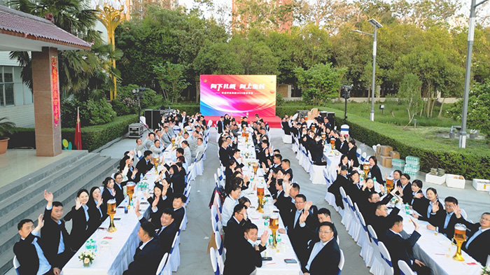 隨著一陣陣歡呼聲,家宴正式拉開序幕,董事長楚科奇及集團管理層共同登臺祝酒,為這個美好的歡聚時刻,與所有家人舉杯慶祝。現場華燈璀璨,笙歌高揚,家人滿座,笑語滿堂。