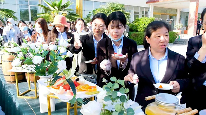 下午15時,榮盛的家人們帶著喜悅與期待的心情紛紛抵達家宴現場,大家有條不紊的進行簽到并與董事長一一合影留念,氣氛融洽,笑聲洋溢。
