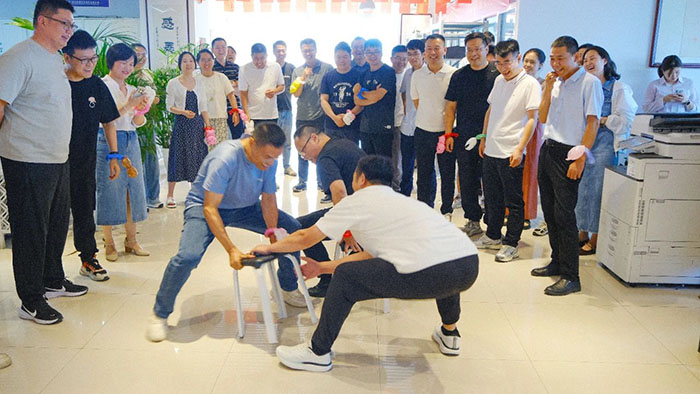 「你畫我猜」環(huán)節(jié),每隊派出精兵強將,接力作畫猜詞,只見畫筆在白板上快速游走,傳遞時,隊員們都眉頭緊鎖、神情專注地思考,努力挖取線索,直到最后一人喊出正確答案,全場爆發(fā)熱烈的掌聲,團(tuán)隊的默契在這一刻達(dá)到極致,隊員們捧著豐富的禮品都露出勝利的喜悅。