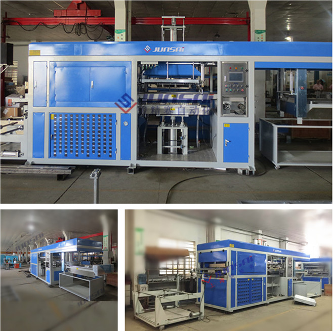 食品包裝托盤吸塑機 特點: 設備操作方便、結構穩(wěn)固、占地面積小、通用性強,從自動上料卷到自動執(zhí)行正負壓吸塑到自動沖切到人工收取成品,一個人可完成,其正負壓的吸塑方式在常規(guī)吸塑機基礎品質(zhì)提高一個檔次,效率提升30%左右,使加工制品單件成本下降20%左右,保障了用戶的競爭力。